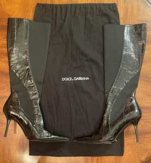 Сапоги женские Dolce&Gabbana из натуральной лаковой кожи комбинированной с плотной эластичной тканью. Размер 37,5.
