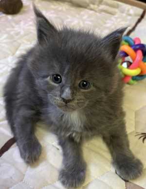 Продам котят мейн-кун, одна девочка пятнистая ,два мальчика чёрные, мама пепельная, папа рыжий, родились 11.11.25 г.